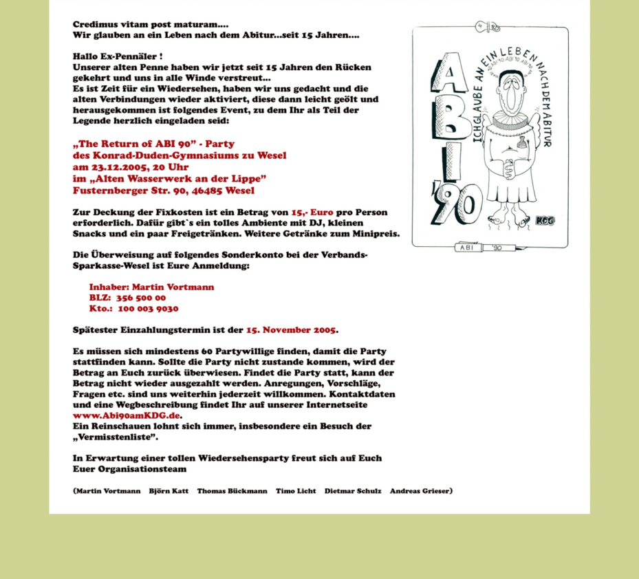 Einladung zur Party 2005: Vorderseite / Rückseite